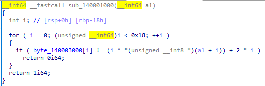 메모리에 있는 값과 (i xor 입력한 문자) + i*2비교 한다.
