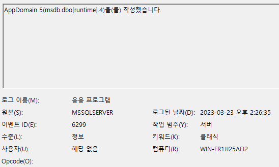 Event ID : 6299 - AppDomain %1!(%2!)을(를) 작성했습니다.