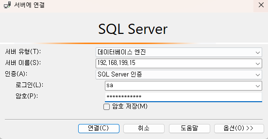 먼저 SSMS(SQL Server Management Studio)를 통해 대상 데이터베이스 서버에 접근합니다.