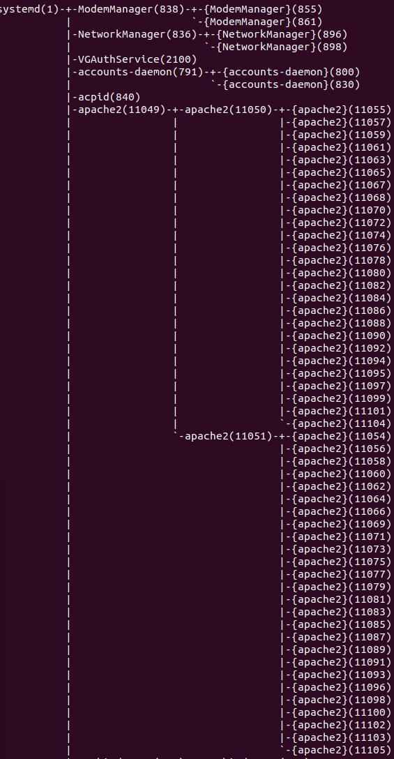 **root 33458 1 0 17:33 ? 00:00:00 /usr/sbin/apache2 -k start**