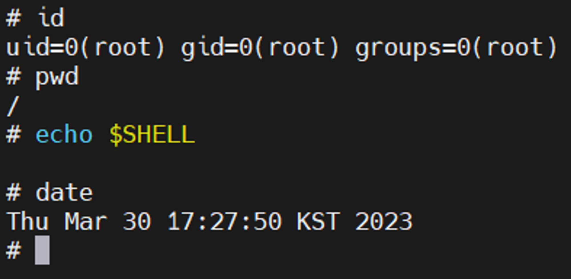 해당 명령을 통해 아래와 같은 결과를 확인할 수 있습니다.