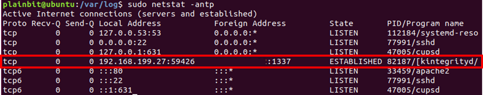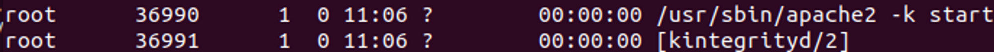 연결에 성공한 경우, 새로운 apache 프로세스가 생성되며, “kintegrityd”으로 위장된 bash 셸이 생성되게 됩니다.