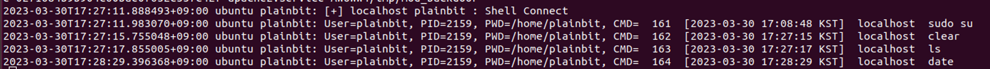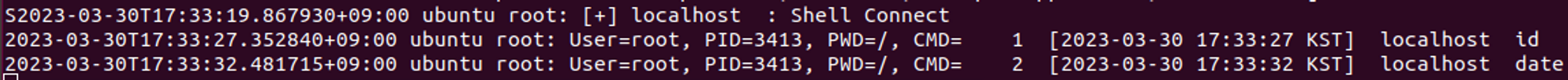 다만, Bind Shell 연결 중 shell을 변경할 경우, 아래 그림 10처럼 입력 명령어가 정상적으로 기록되게 됩니다.