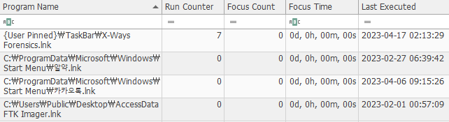 다만, UserAssist의 경우 사용자가 실행한 프로그램과 어플리케이션의 이력을 저장합니다. 즉, 프로그램이 자동으로 실행되거나 다른 프로그램에 의해 실행되는 경우에는 실행 이력이 UserAssist에 기록되지 않을 수 있습니다. 따라서, 시작 메뉴, 탐색기, 바탕화면에서 프로그램을 직접 실행할 때 해당 정보가 기록되게 됩니다.