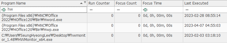- 해당 키의 경우, 사용자가 실행한 실행 파일의 실행 이력이 기록됩니다.