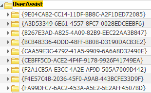 NTUSER.DAT\Software\Microsoft\Windows\ CurrentVersion\Explorer\UserAssist\{GUID}\Count