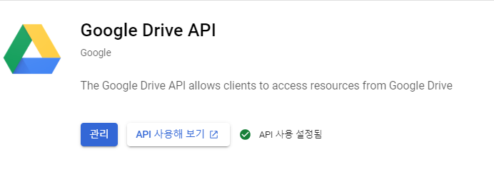 - 그런 다음 Google Drive API를 검색하여 설치한다.