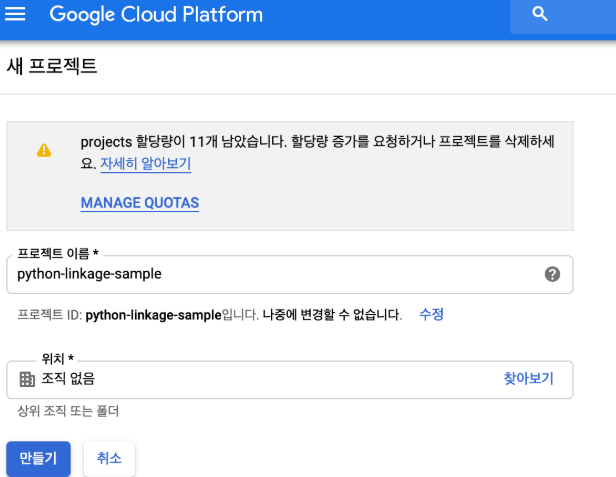 - 만약 프로젝트가 없다면 프로젝트를 생성합니다.