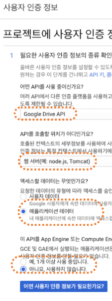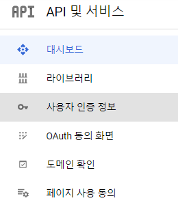 - 왼쪽 메뉴의 사용자 인증 정보로 들어간다. ( 사용자 인증 정보 만들기 클릭 )