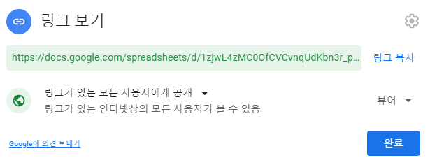 - 추가적으로 링크를 복사해 gspread로 구글 시트를 제어할 수 있습니다.